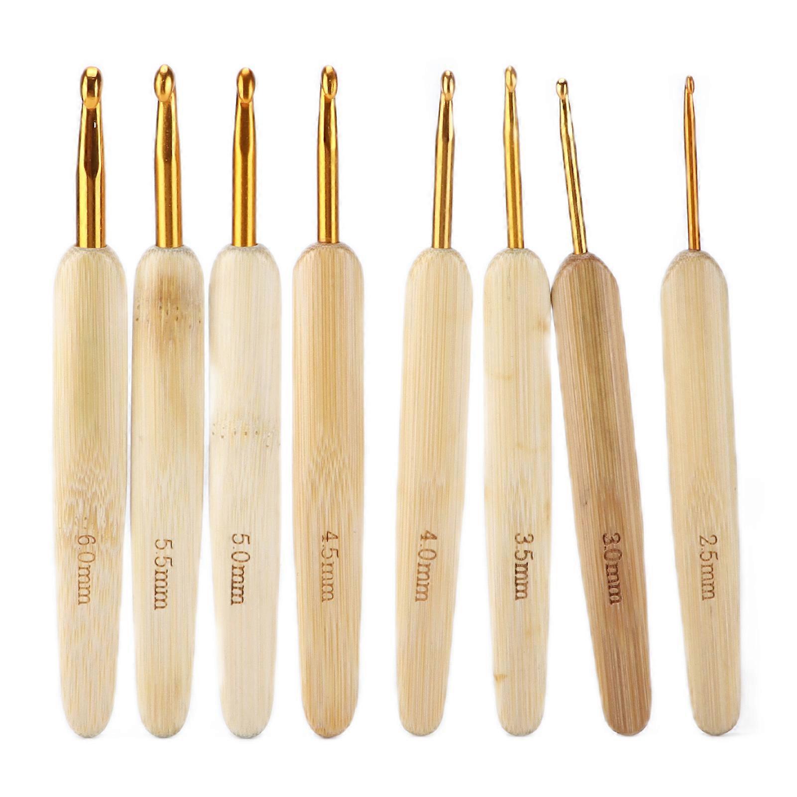 8pcs Crochet Hooks Alumina Needle Bamboo Handle Golden Weaving Tools for Handicraft Lovers