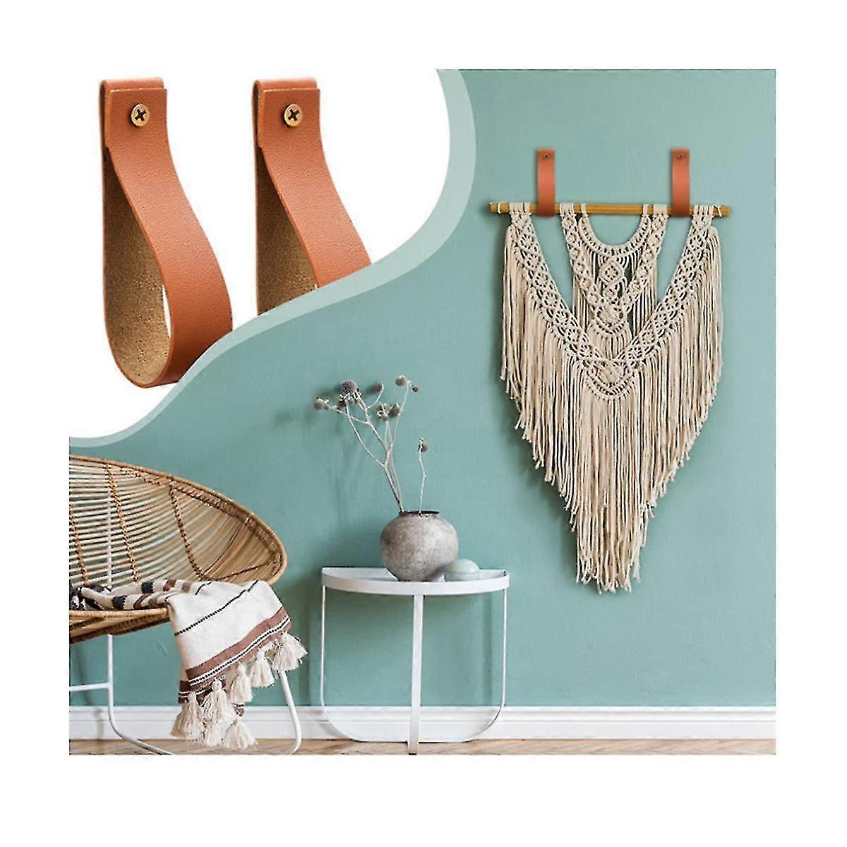 8pcs Pu Leather Wall Hooks Wall Hanging Strap Leather Curtain Rod Holder Pebbled Leather Straps Han