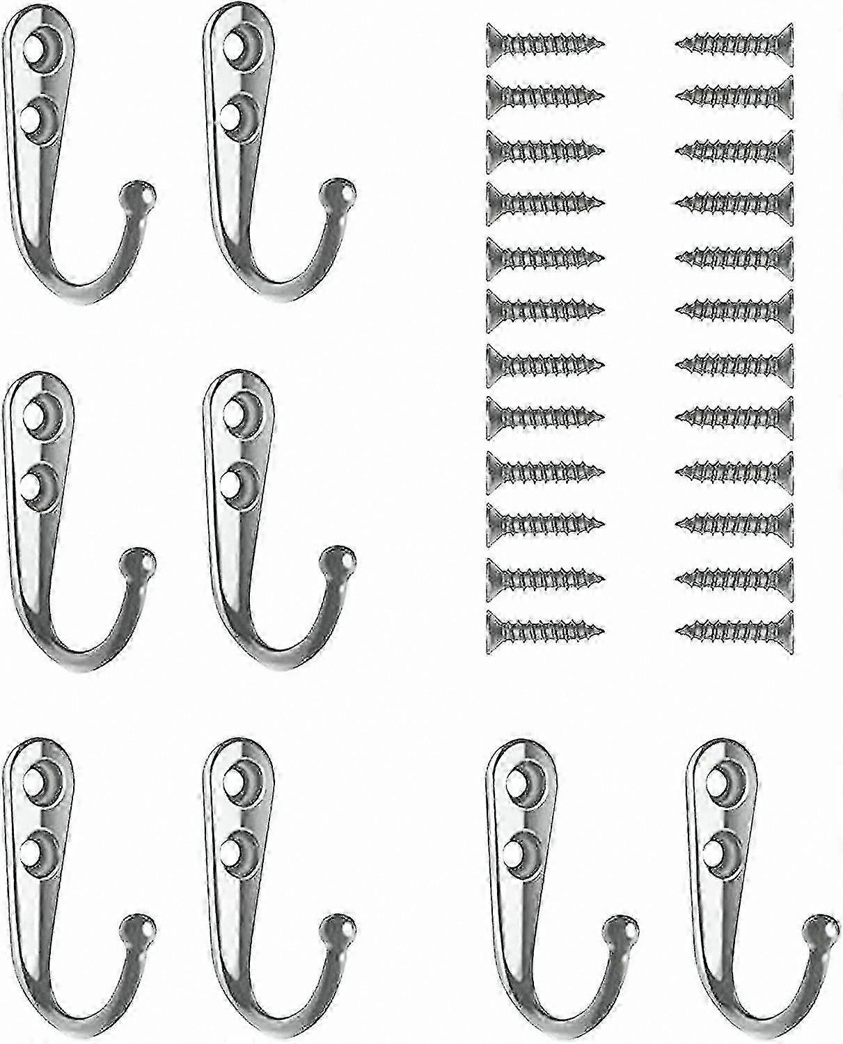8pcs Heavy Duty Wall Mounted Hooks for Towels and Coats, Metal Robe Hangers with 24 Screws for Bathroom Use