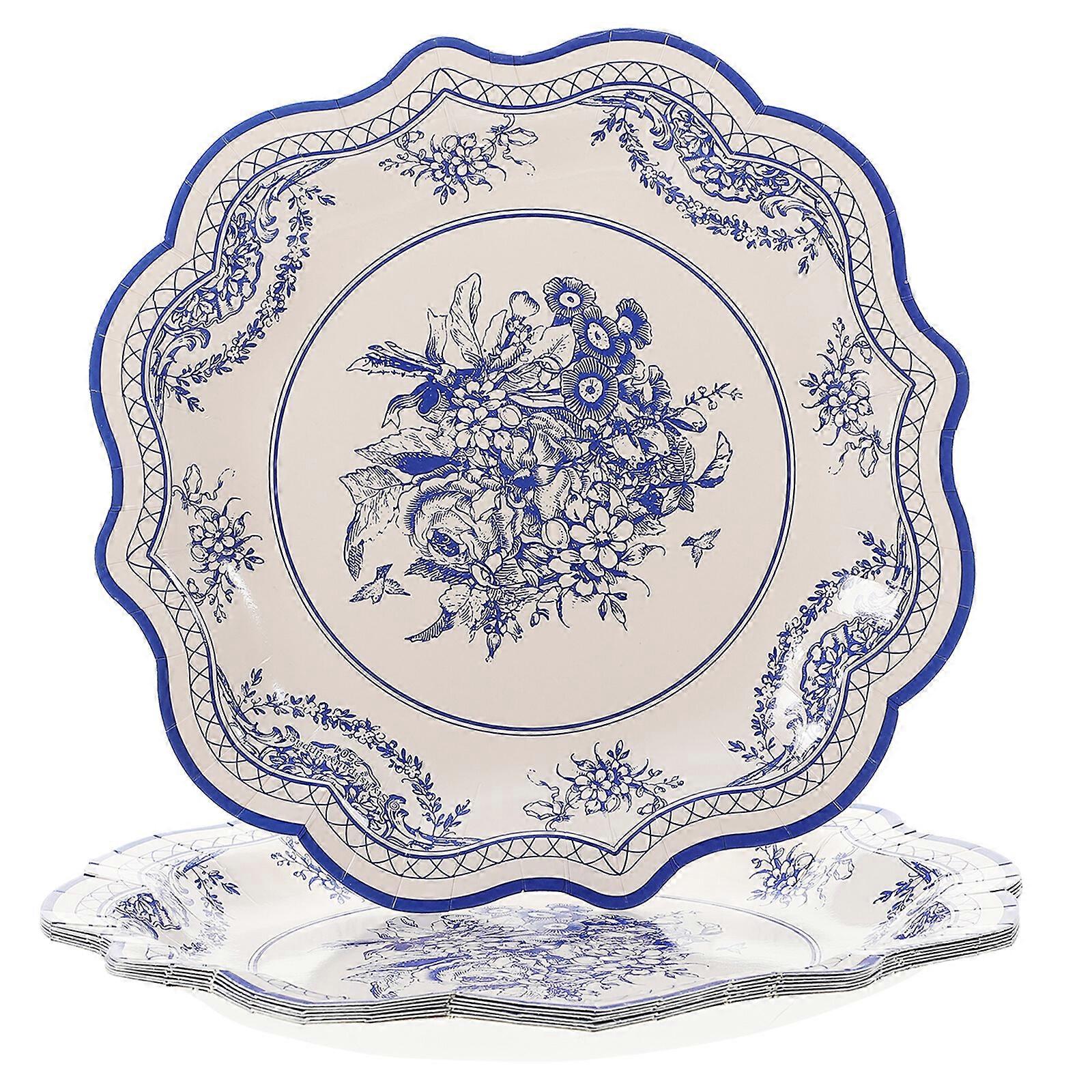 8pcs Vintage Printed Flower Pattern Dish Decorative Paper Dish Disposable Hygeian Food Tray for Party