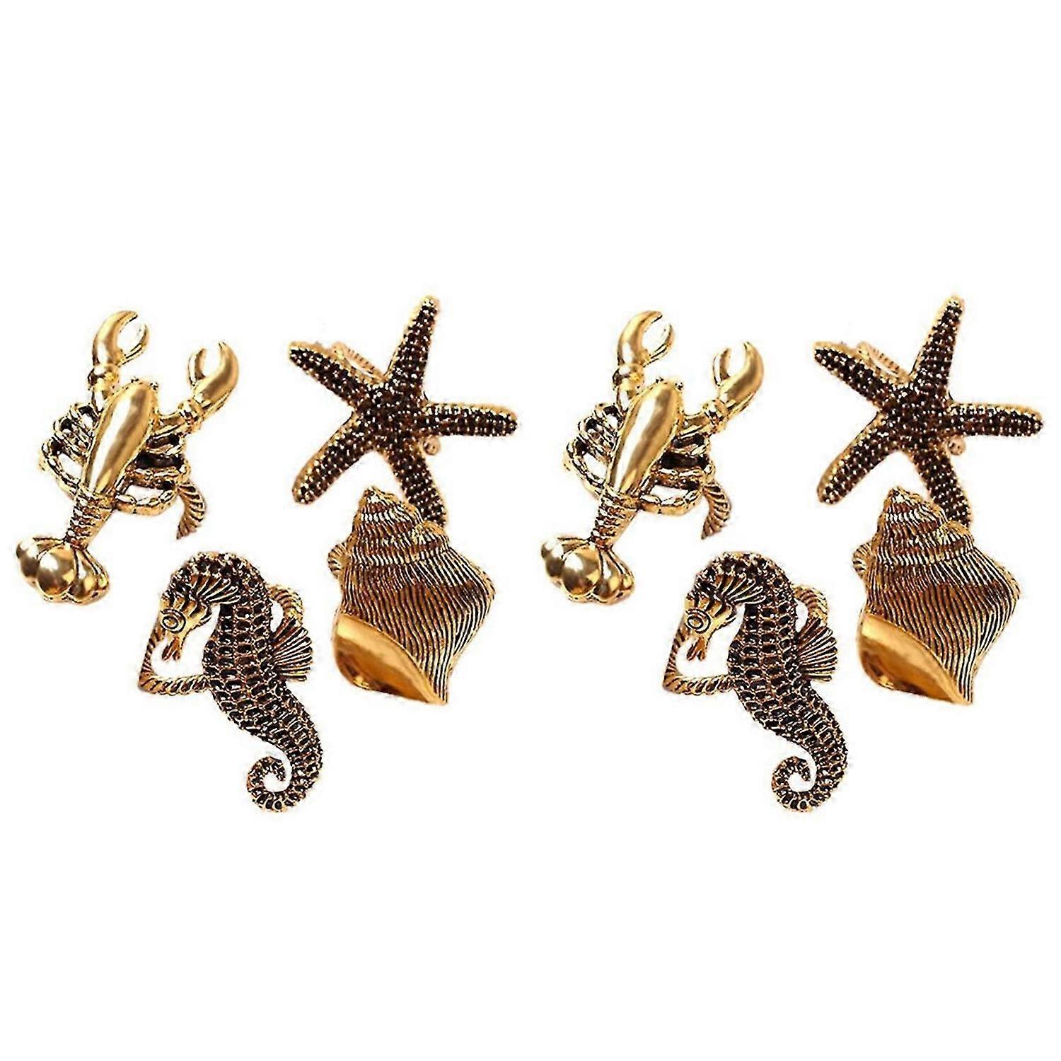8Pcs Marine Series Shells Starfish Hippocampus Napkin Ring Model Room High-End Hotel Napkin Buckle N