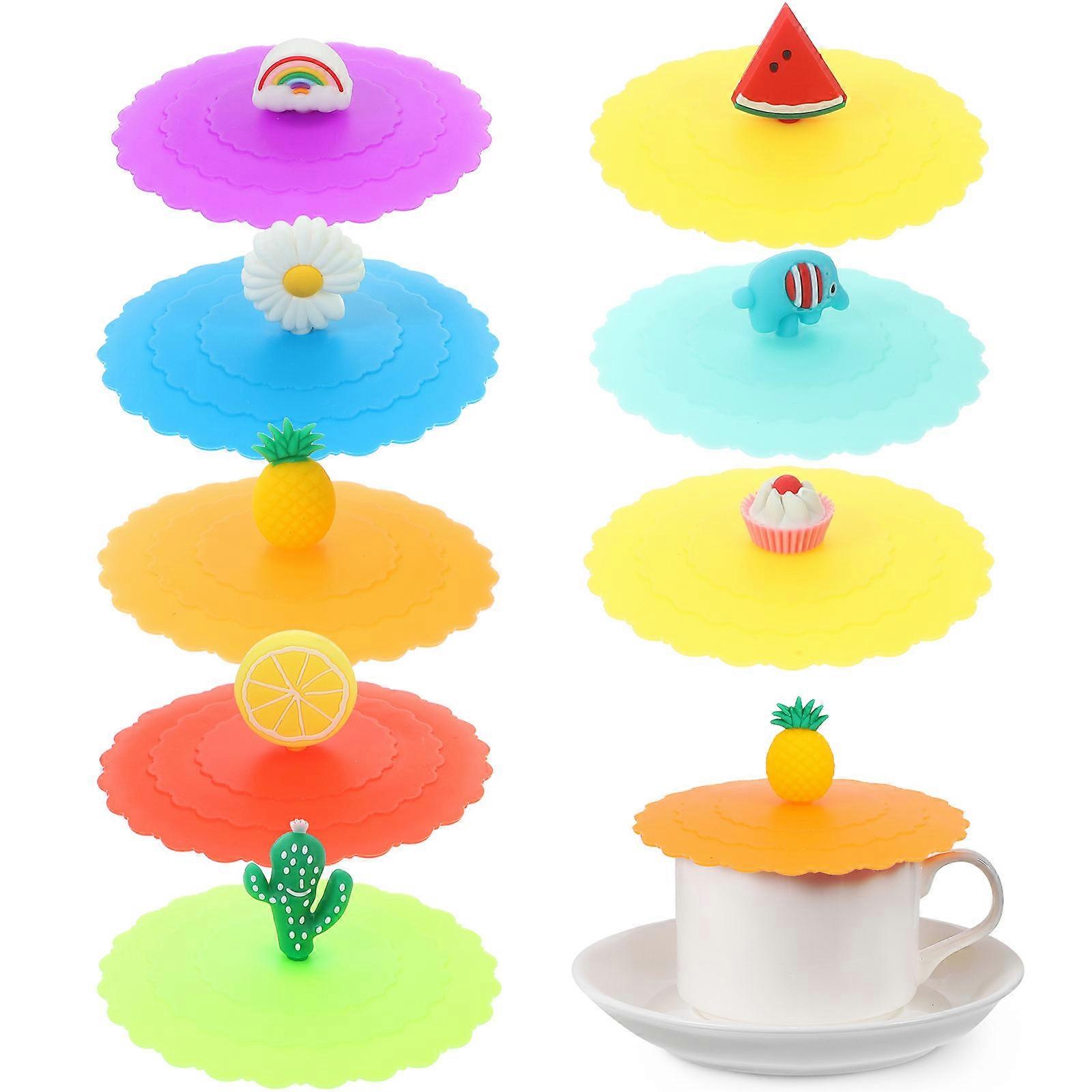 8PCS Silicone Mug Covers Set Cute Cartoon Cup Lids for Dust Protection, Easy Clean & Install, Ideal for Home and Outdoor Use