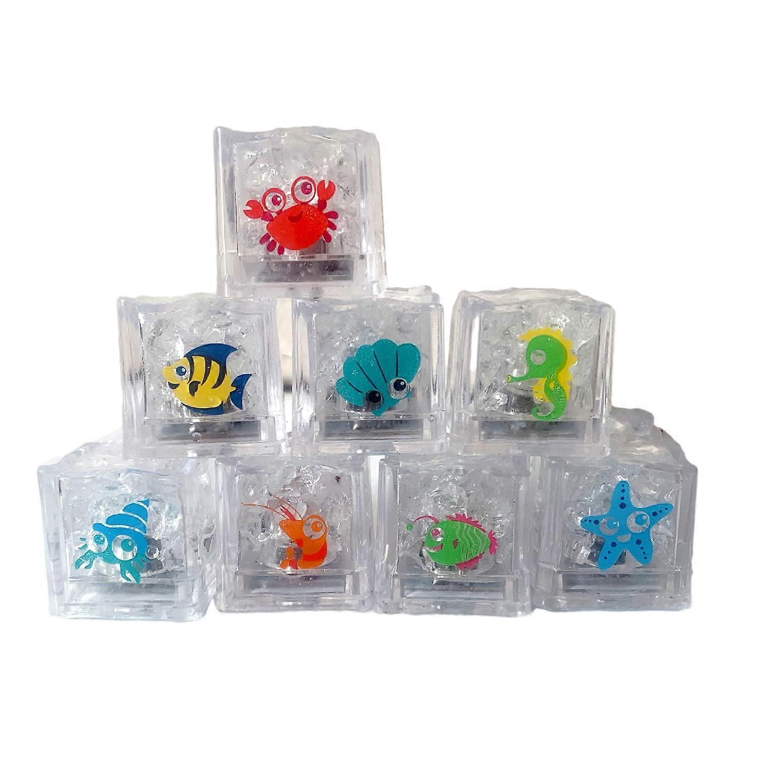8Pcs Glowing Bath Cubes Set Sea Animal Graphics Light Up Bath Toy for Kids Water Activated Sensory
