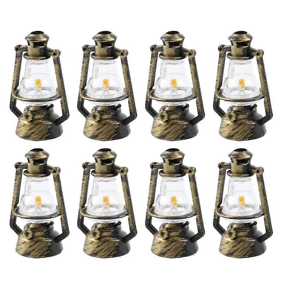 8pcs Mini House Kerosene Lights Fairy Garden Kerosene Lamps Retro Decoration
