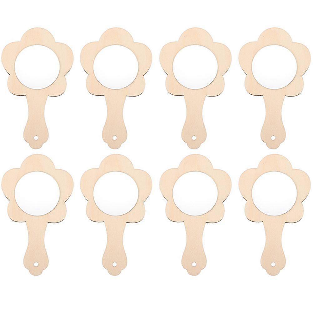 8Pcs DIY Wooden Handheld Mirror Unfinished Mirror Unpainted Makeup Mirror for Kid