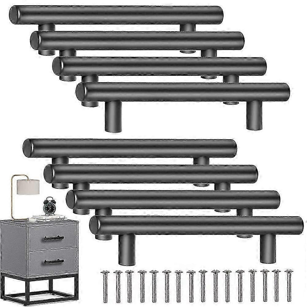 8 PCS T-Bar Stick Kitchen Door Handles Pulls With Screws(200MM), Stainless Steel Furniture Handle Hole Spacing 128mm,Black