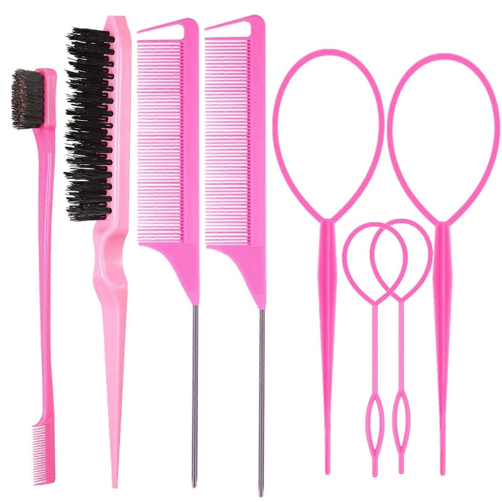 8 Pieces Hair Tail Tools Set Rat Tail Comb Styling Combs Teasing Combs Parting Combs French Braid Tool Loop for Women Pink