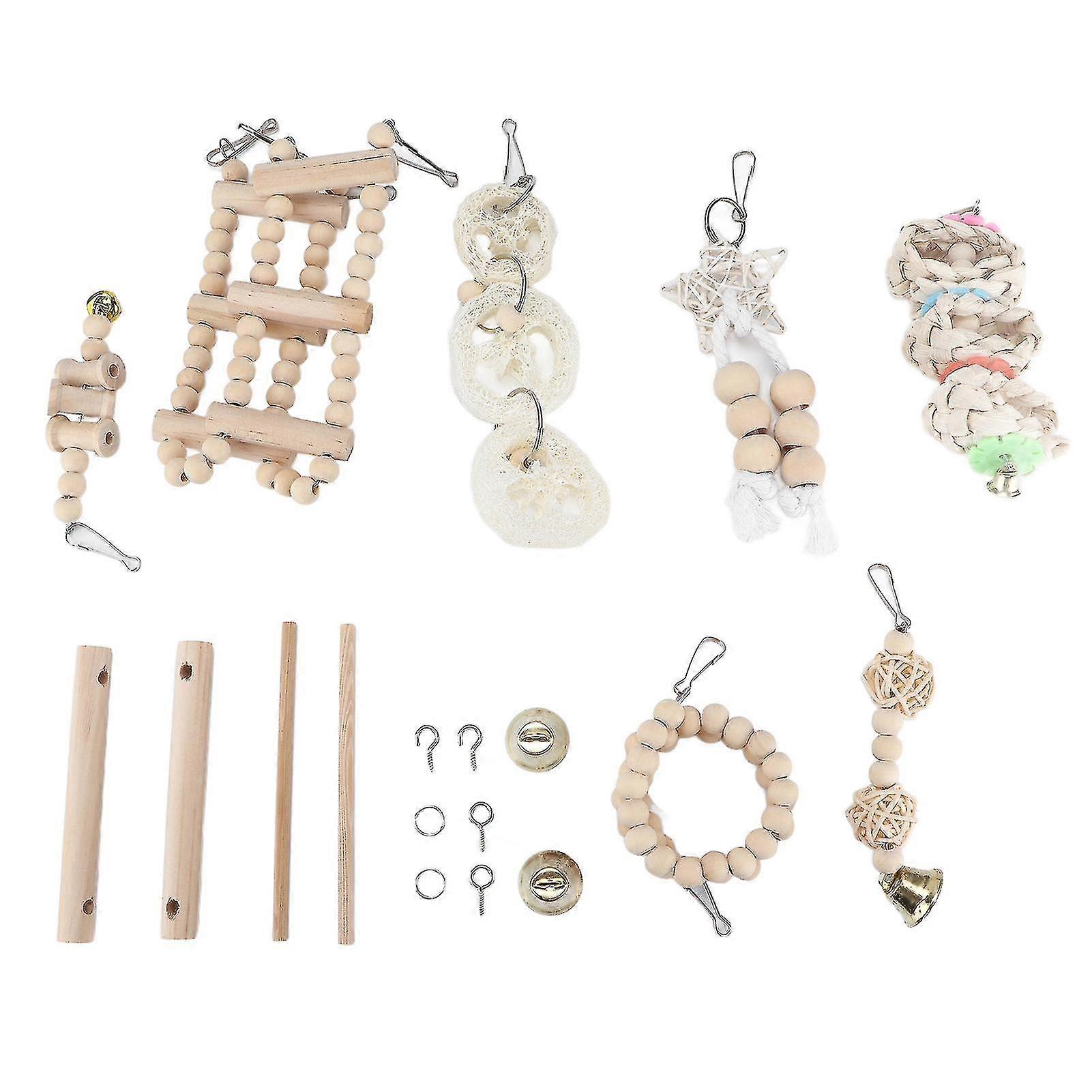 8 Pcs Parrot Toy Wooden Birds Swing Chewing Toy Pet Birds Cage Nest Hanging Toys Spiral Ladders Vertical Roosting Toys