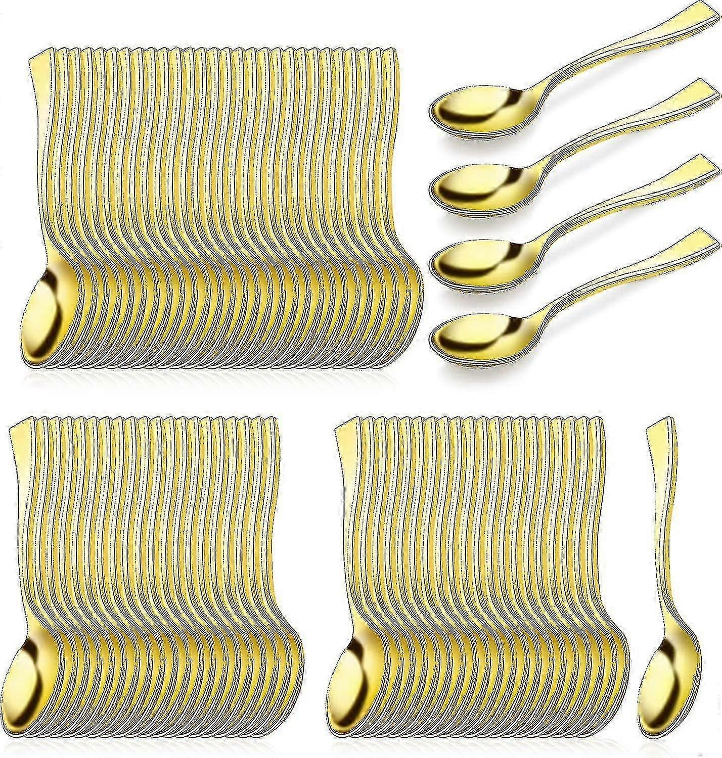 Superior Material: The Golden Plastic Spoons Are Made of 100 percent Food-Grade Material. They Are Lightweight, Durable, and Non-Toxic, Making Them Safe for Your Family and Friends To Use. Multi-Purpose: These Mini Golden Appetizer Spoons Are Perfect for Serving Meats, Ice Cream, Puddings, Fruit and Cheese, Desserts, Fondue and Cocktail Snacks, and Tons of Other Favorite Party Foods. Stylish and Chic: These Disposable Plastic Mini Spoons Have A Bright Gold Finish That Really Elevates The Look of Your Party Experience, You Can Use Our Disposable Plastic Spoons In Both Formal and Informal Events, Such As Birthdays, Weddings, Parties, Banquet Dinners, These Disposable Spoons Are Also Great for Graduation Season, Halloween, Thanksgiving, Christmas, New Years Day, and More Package Includes: Our Set Includes 80 Mini Gold Spoons, Enough for You To Use, and When You'Re Done, Just Throw Them In The Trash for Easy Cleanup. 80 Pieces Disposable Plastic Mini Gold Spoons, Gold Plastic Tasting Spoons, 3.94 Inch Dessert Mini for Ice Cream Taster, Sampling, Fancy Miniature Pudding or Appetizers Posh Setting Material : 100 percent Food-Grade Material Colors : Gold Package Includes : 80 X Gold Spoons