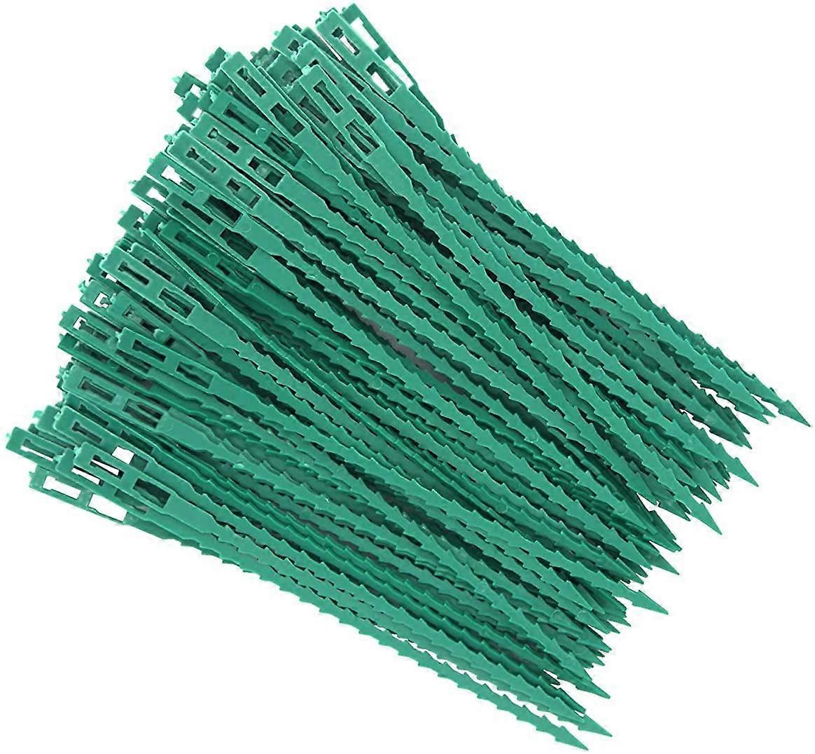 Size about 17cm, 80 pieces in a package. This plant stake is used for the garden, garage, yard, home, office, workshop, etc. This plant stake is ideal for tying down plants, vegetables and vines to stakes and trellises, and provides secure support for plant stems. It is very convenient and quick to pick up and arrange the plant, and it will not hurt your hand. Material: Soft green plastic, easy to use and reusable, the movement of the closure to slide locks in place, it's adjustable when you need it. These adjustable plant ties won't damage plants or leaves.