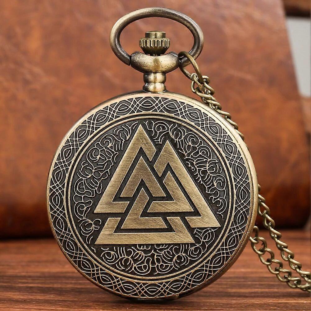 Antique Stylish Triangle Bronze Quartz Analog Men's Pocket Watch with 80 cm Necklace Pendant Vintage Timepiece Gifts Unisex