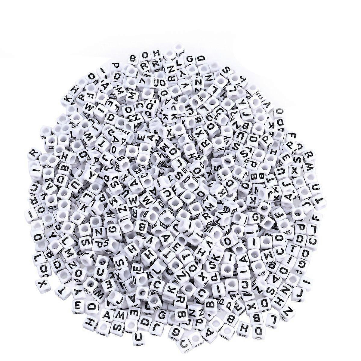 800 Pieces 6mm DIY Acrylic Alphabet Letter Cube Beads for Jewelry Making DIY Bracelets Necklaces Children's Educational Toys Key Chains (White)