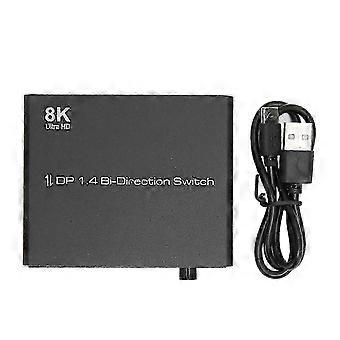 8K Displayport 1.4 2 Way Switch 1 in 2 Out Or 2 in 1 Out High Resolution Plug and Play Bidirectional DP Switch Black