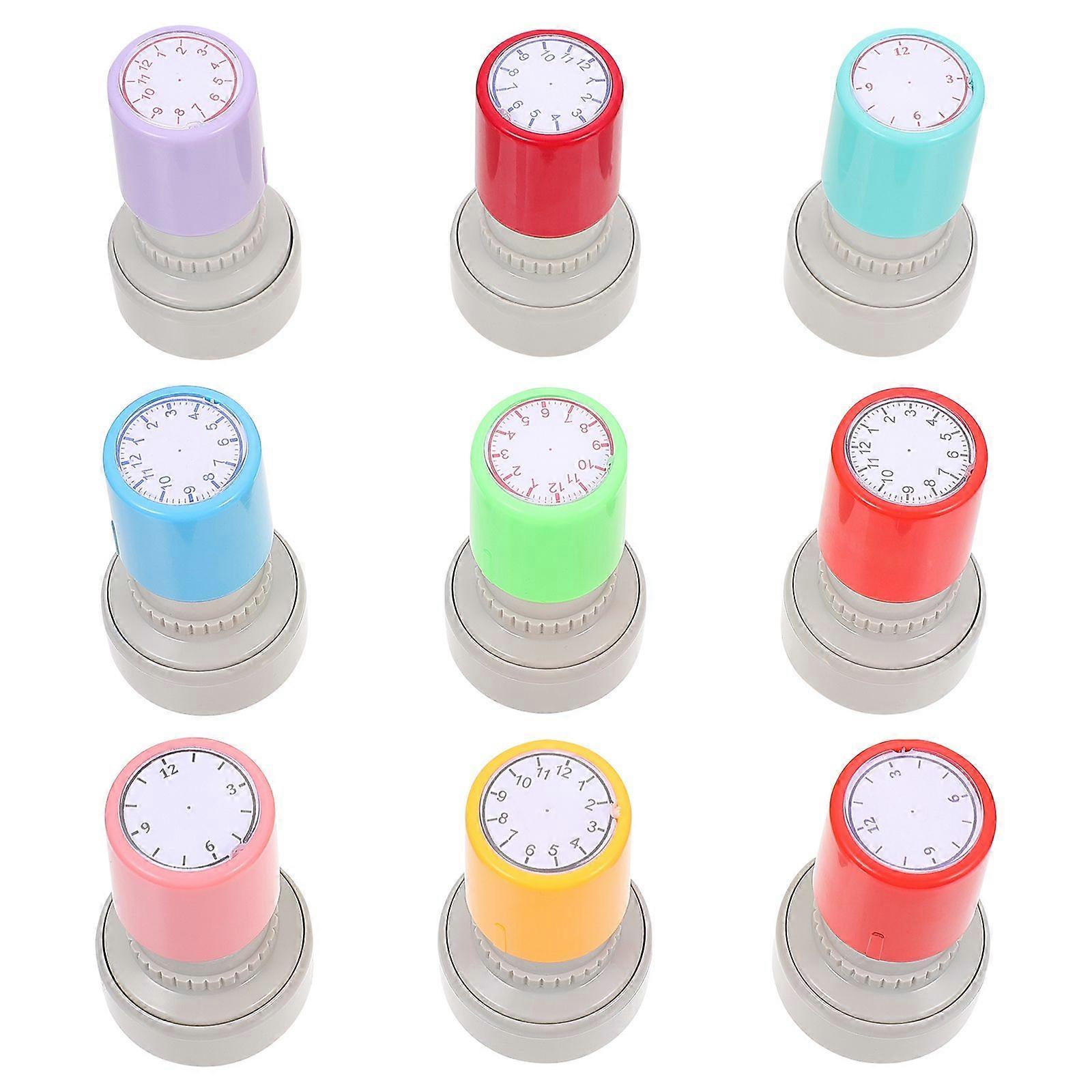9 Pcs Kids Teaching Clock Stamps 2.5cm Students Time Telling Seals Stampers