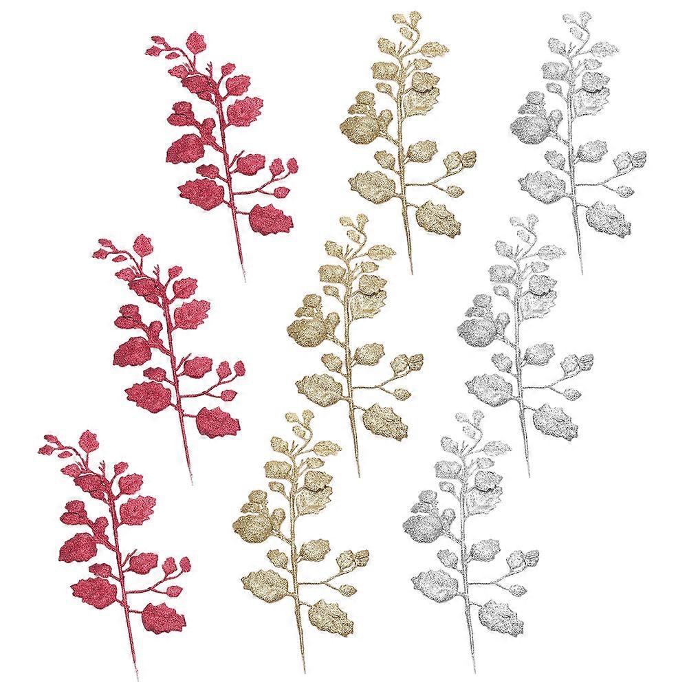 9pcs Glitter Glitter Artificial Leaves Stems Christmas Decorations for Tree Ornaments Party Enhancements Vibrant Fake Plants for Festive Holiday
