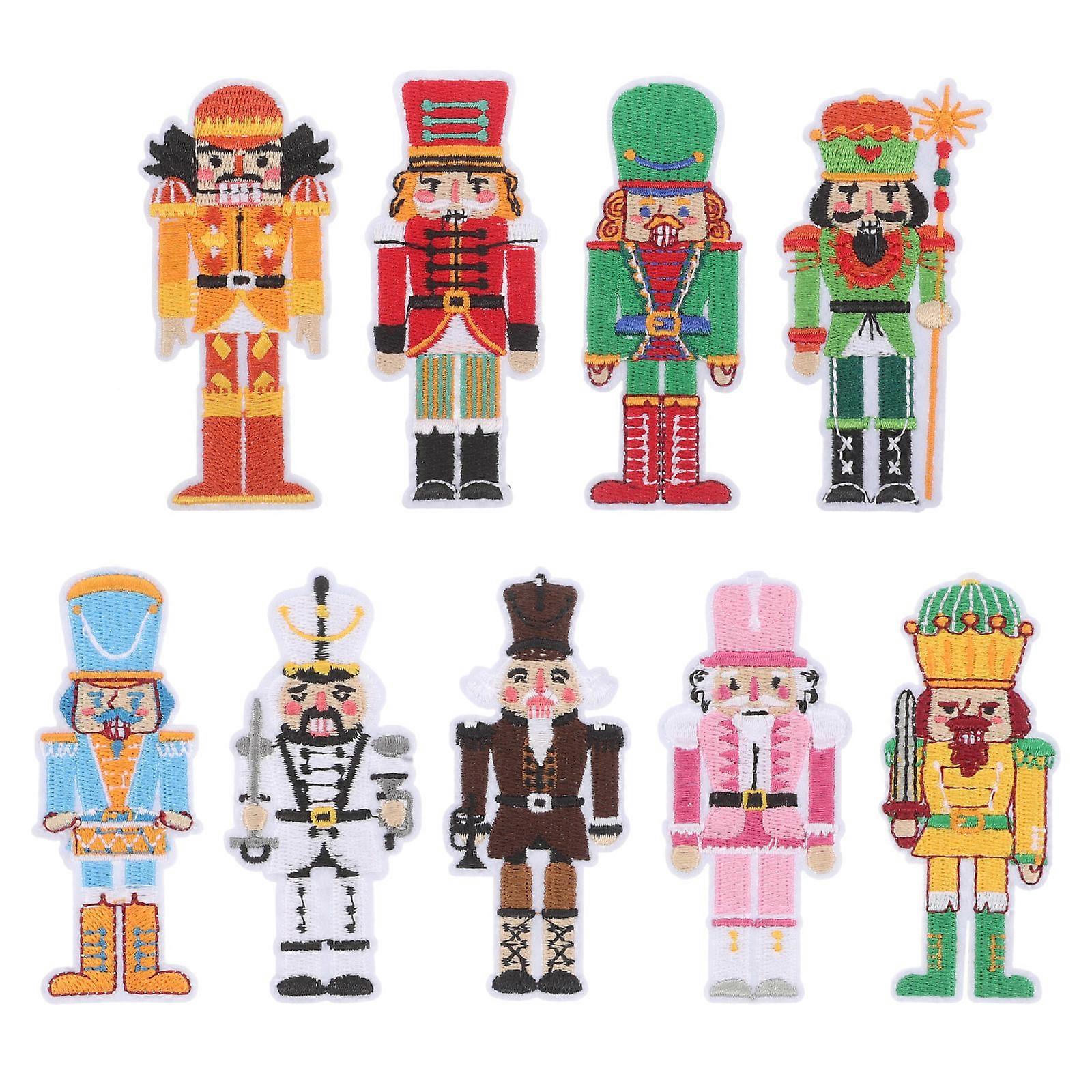 9pcs Decorative Nutcracker Soldier Iron On Patches for DIY Clothing, Bags & Crafts Embroidered Applique Repair Patch for Christmas