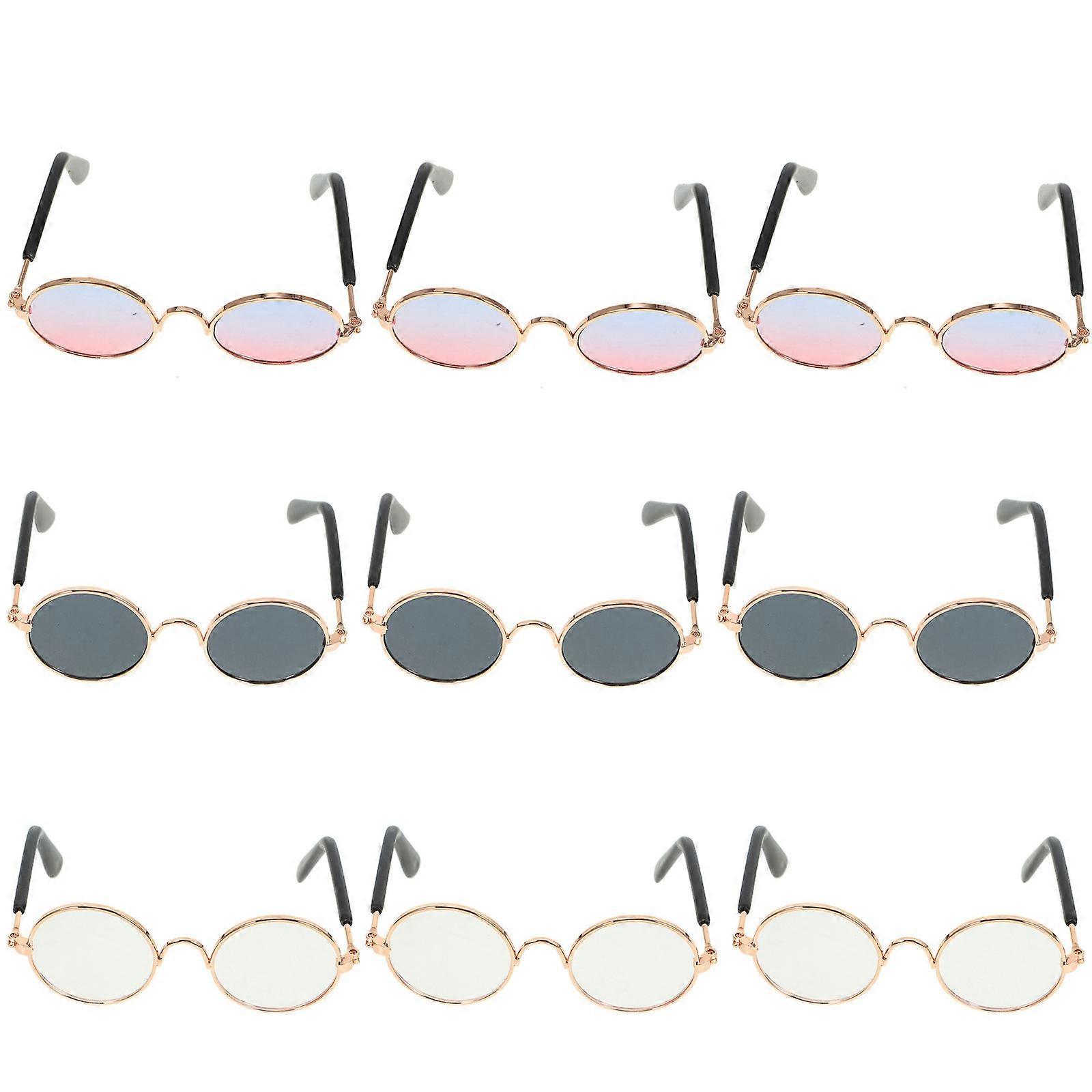 9pcs Mini Doll Glasses, Lightweight Metal Frame Decorative Eyewear Props for Dolls, Includes Black, Gradient, Blue, Transparent Colors for