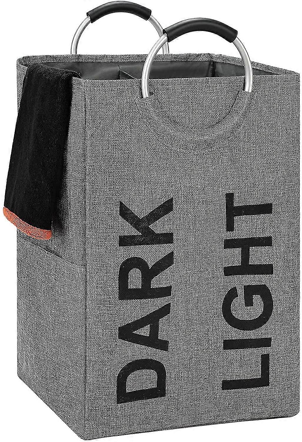 90l X-large Linen Double Laundry Hamper, Collapsible Washing Basket, Foldable Clothes Bag - Durable And Easy To Clean (dark Grey)