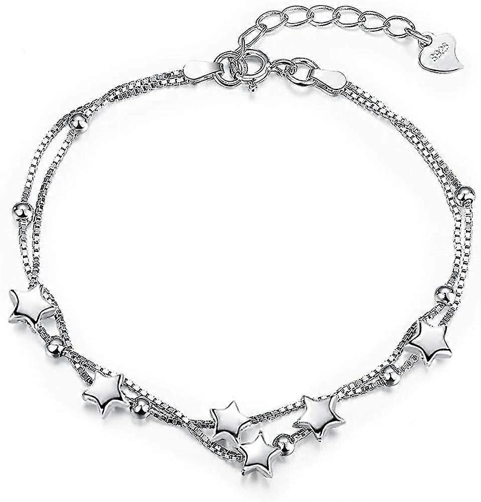 Elegant Pearls And Stars Double Layered Bracelets With 925 Sterling Silver Gift