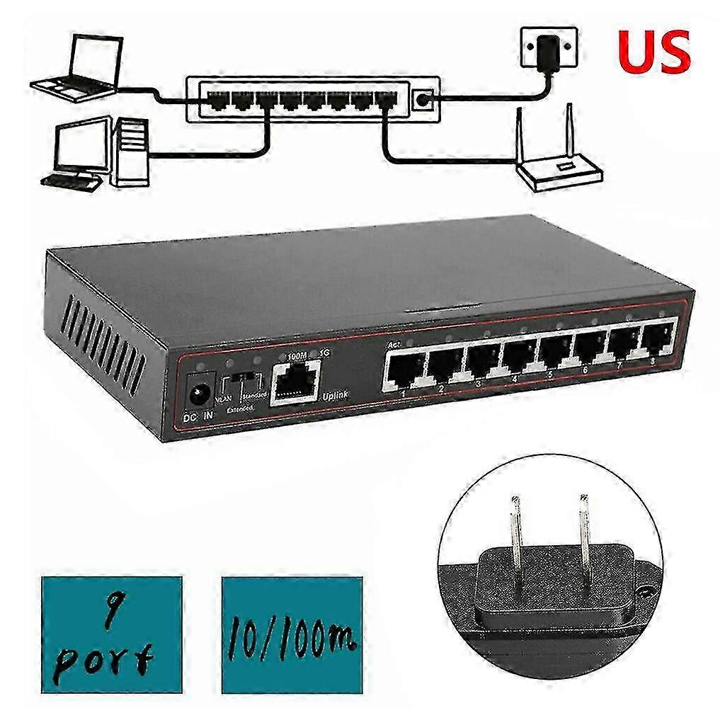 9Ports LAN Ethernet Net-work Switch HUB Mini Desktop Adapter US/UK/EU/AU Plug