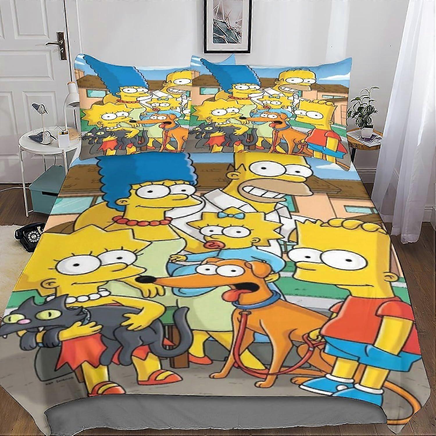 A28 The Simpsons Duvet Cover Set, 3D Cartoon Quilt Cover Bedding Set with Pillowcases,Soft Microfiber for Adults Teenager Kids 3 Pieces Double B28