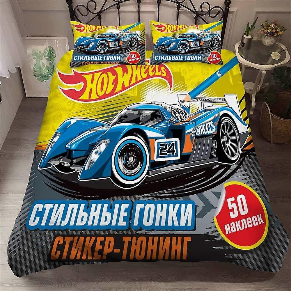 A644 Bedding Set Multiple Sizes Hot Wheels Sports Car Duvet Cover 52% Cotton Soft Comfortable Duvet Cover + 2 Pillowcase B644