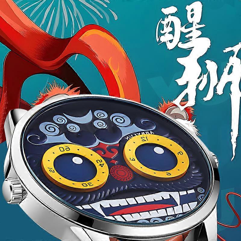 ABBYLUN 1363 Men Quartz Watch Blue Joker Lion Creative Personality Design Clock Leather Strap Wrist Watches for Male Boy Gift