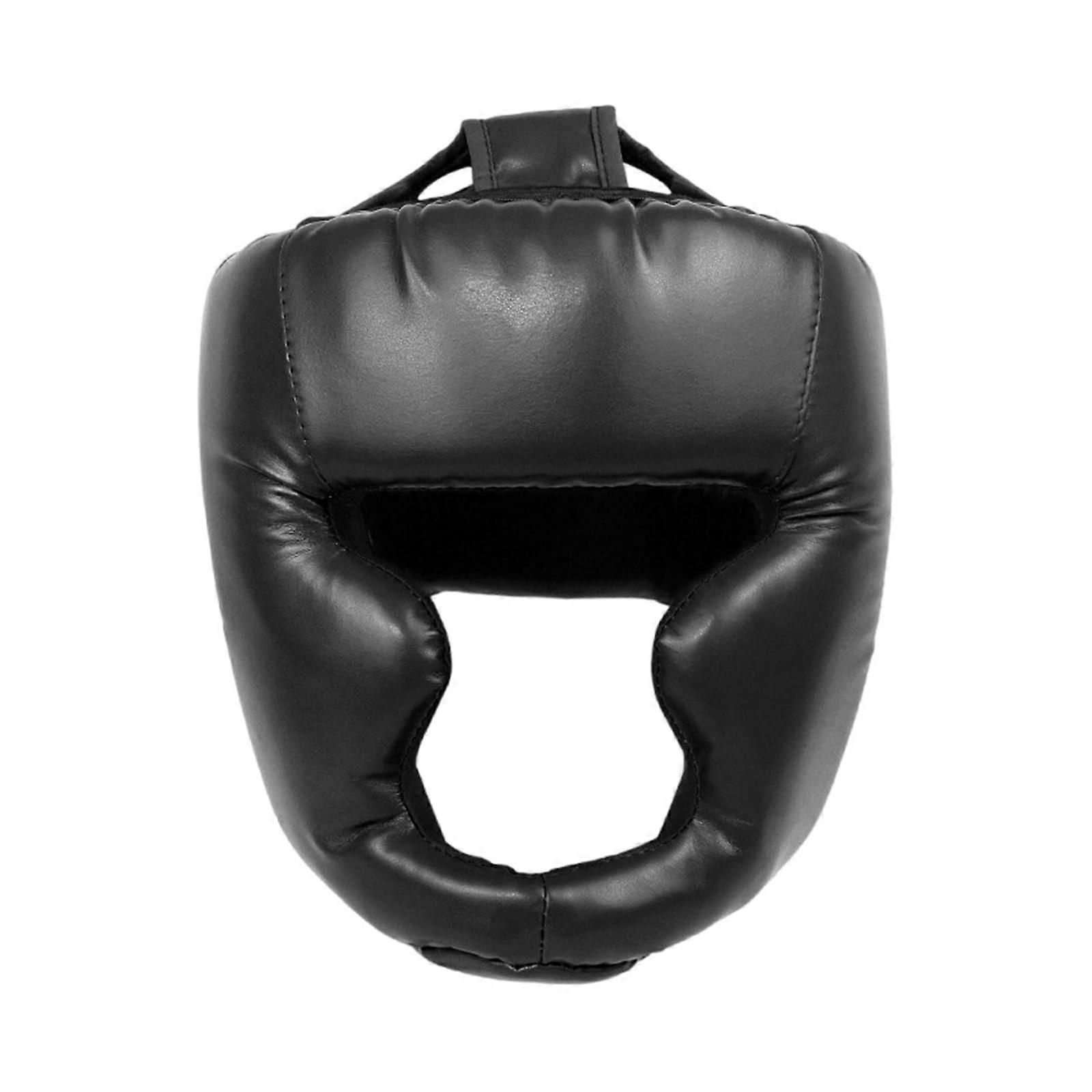Adjustable Boxing Headgear Black S, Durable PU Leather Full Coverage Martial Arts Head Protector