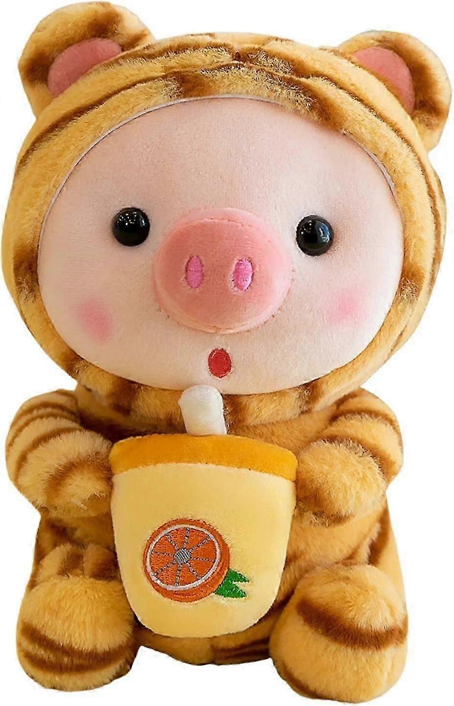 Adorable pig-shaped bubble tea plush pillow with soft texture and cute expression