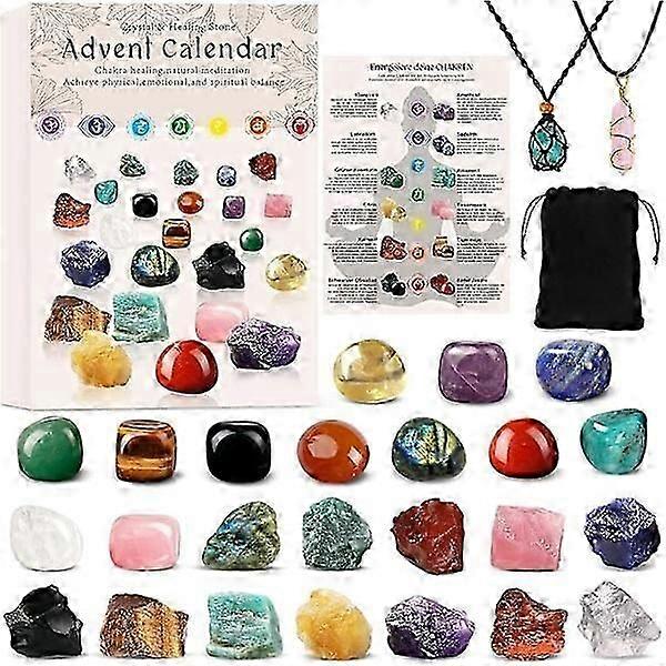 Advent Calendar 2024 crystals, Christmas countdown with 24 chakra crystals and identification sheet.