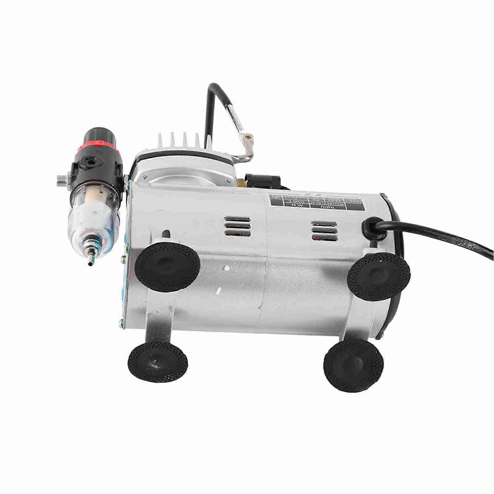 Airbrush Set Piston Type Art Paint Spray Airbrush System Kit with Mini Gas Compressor for Model Coloring Nail Art Cake Decorating Color: Silver  Material: Aluminum + Copper Type: Single-Cylinder Piston Compressor Power: 1/5HP  Speed: 1450 / 1750RPM Gas output per min./litres: 23L/MIN Maximum Pressure: 7bar(100PSI) Working Pressure of Airbrush: 15-50PSI  Low Noise: ≤ 50db Auto Stop, starts at 2.8 bar, stop at 4 bar(special pressure available) Connections: with connection G 1/8" BSP Electric Cable: Approx. 1.8m / 6ft Main Item Size (uninstalled): 245 * 135 * 170mm / 9.65 * 5.31 * 6.69in Main Item Weight: 3540g / 7.8lb Package Size: 290 * 250 * 160mm / 11.42 * 9.84 * 6.30in Package Weight: 4100g / 9.04lb