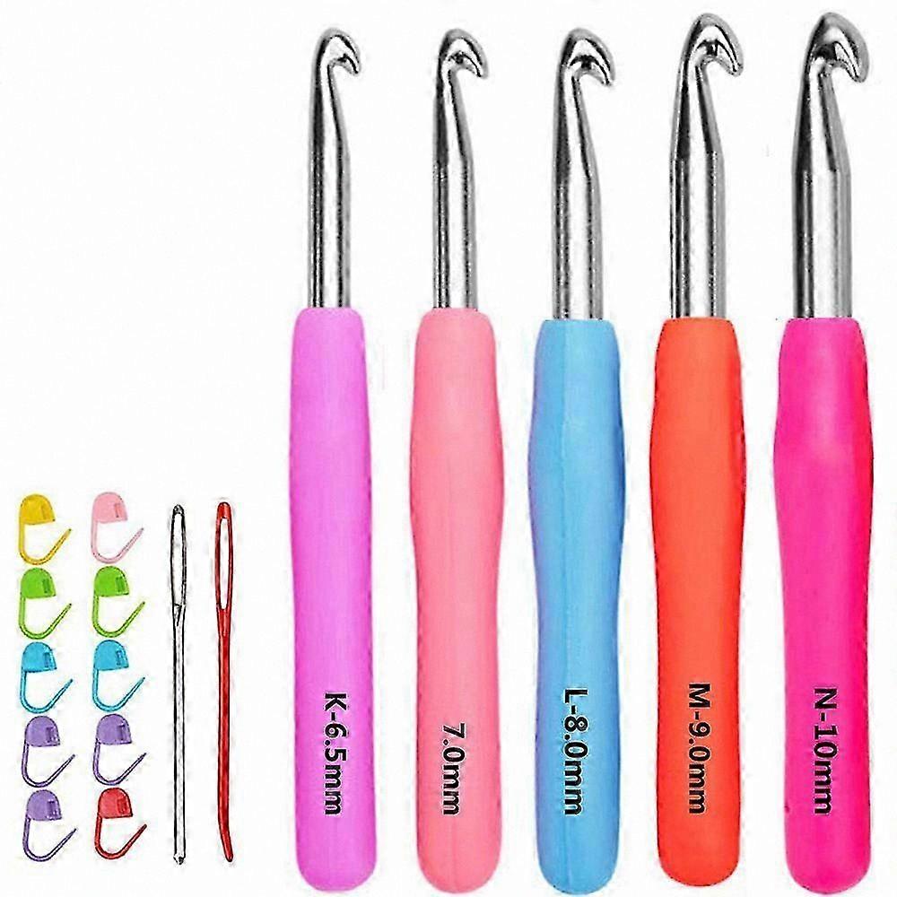 Aluminum Crochet Hooks Set with Ergonomic Soft Grip Handles, Size 6.5mm to 10.0mm, Includes K, L, M, N/P Sizes in Storage Case