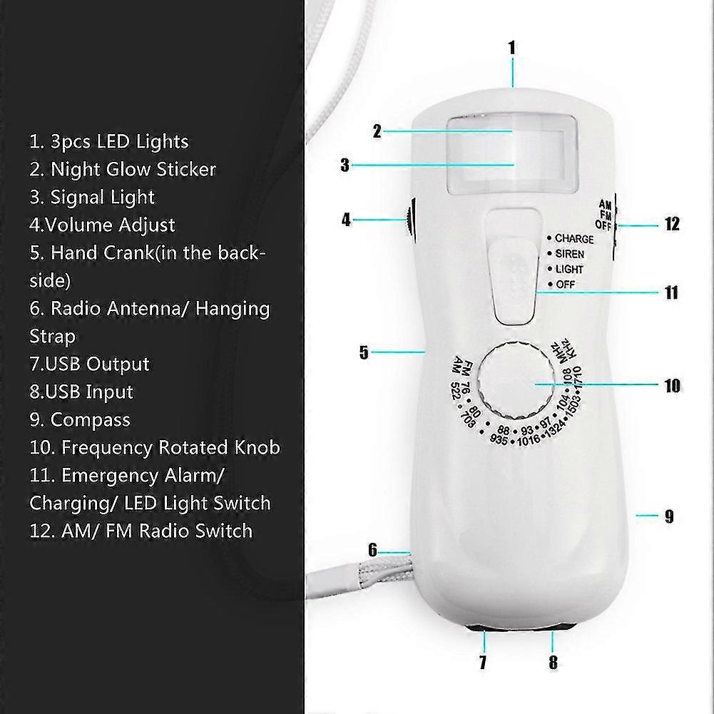 Am/fm Radio With Flashlight Compass,portable Emergency Hand Crank Dynamo Power Supply Fm Am Radio Player