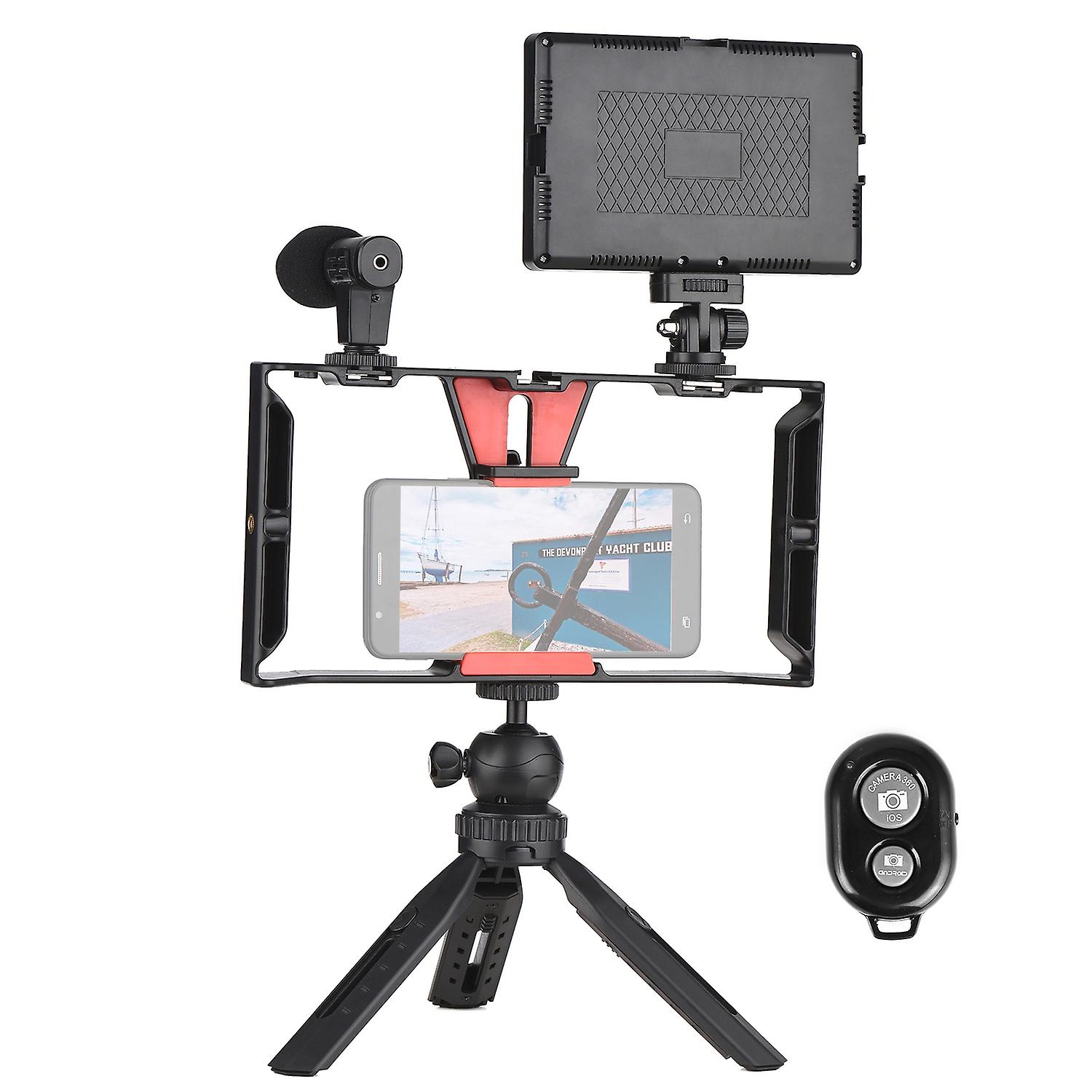 Andoer Smartphone Video Rig Vlog Kit Including Smartphone Cage with Phone Clamp 3 Cold Shoe Mounts +