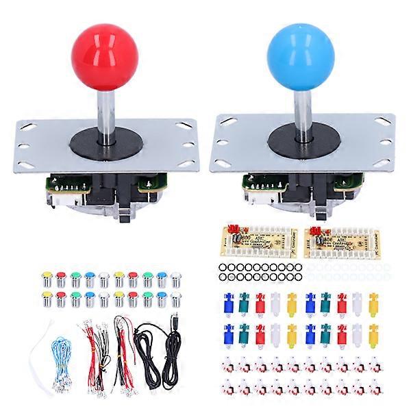 Arcade Game DIY Parts Kit (2-Player) Material: Plastic Features: Electroplated joystick set for 2 players. Suitable for arcade game consoles. Force feedback vibration. Colorful design. Zero-delay USB encoder with its own cable. High-quality 5-pin 8-way joystick (1 million+ clicks lifespan). Bright, uniform LED lights (max 5V). High-quality, high-temperature resistant plastic buttons. Includes: 2 x Joysticks 20 x Buttons 20 x Fasteners 20 x Washers 20 x Switches 20 x White and Blue Wires 20 x LED Lights 2 x Zero-Delay USB Encoder Boards 2 x USB Cables 2 x Red and Black Wires 1 x 5-Pin White Wire