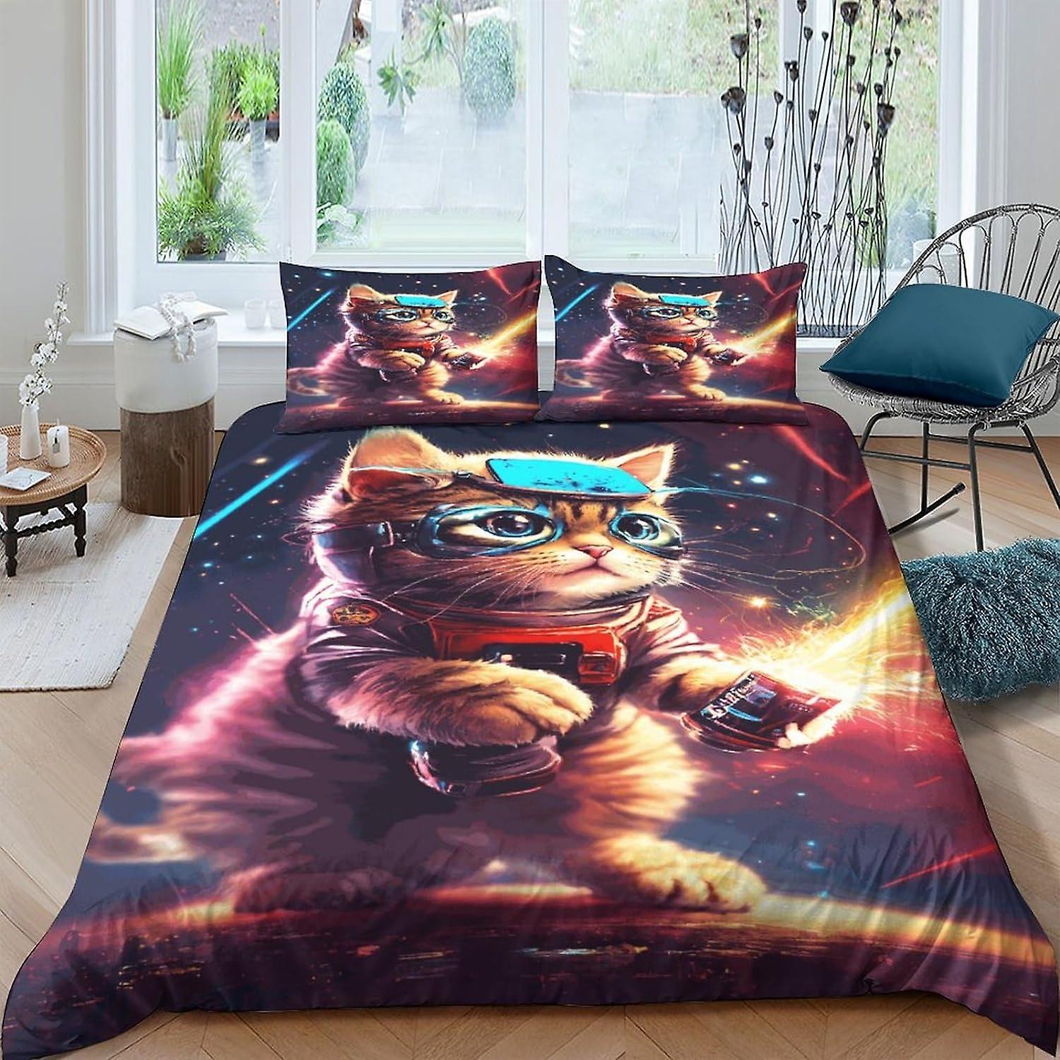 ARIJORJA cat Duvet Cover Set 3D Printed Cartoon Set With Pillowcase Cartoon Quilt Cover Bed Linens King
