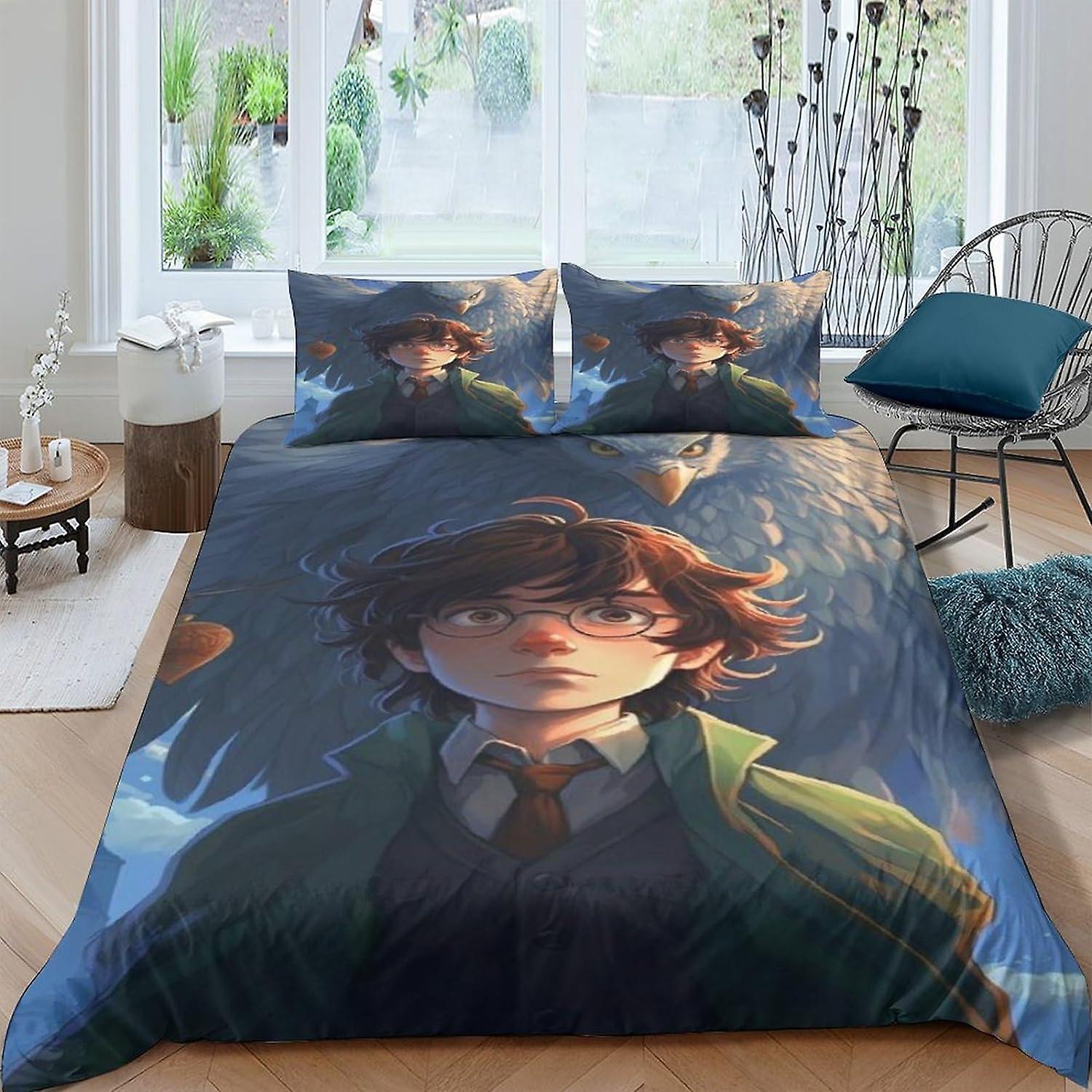 ARIJORJA magic academy Duvet Cover 3D Cartoon Printed Bedding Set 3Pcs Microfiber Cartoon Quilt Cover with Zipper Closure Double