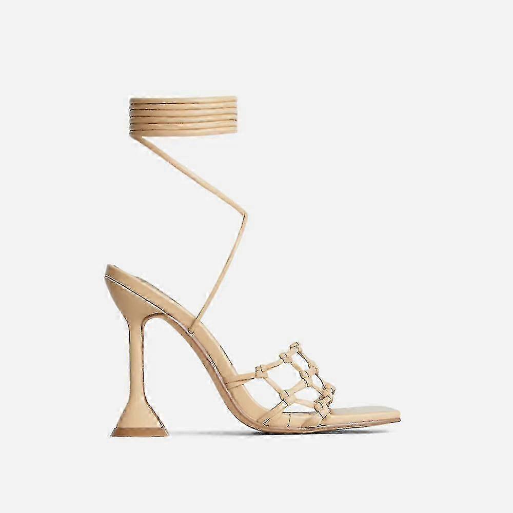 Baldauren Summer New Square Toe Pu High Heel Back Lace-up Non-slip Women's Black Large Size Fashion Sandals