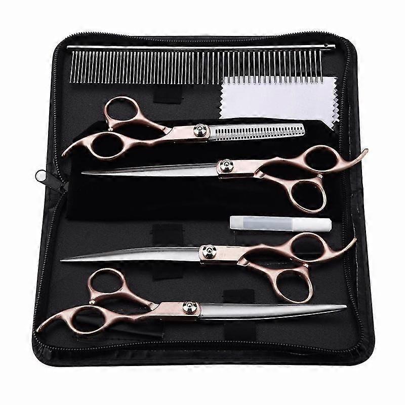 Barsinfi 7 Inch 4PCS Gold Handle Scissors Professional Pet Dog Grooming Scissors Set For Hairdressing Pets