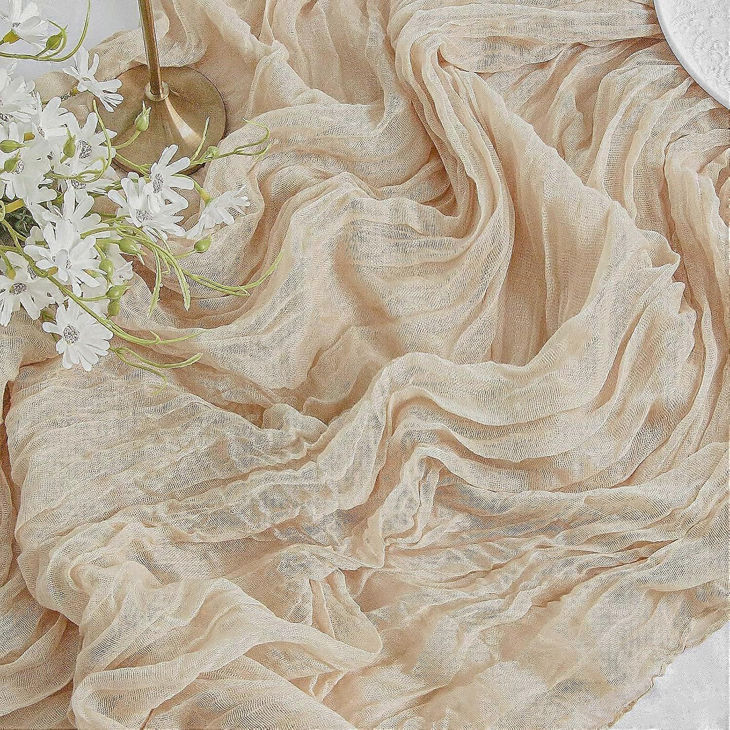 Beige Cheesecloth Table Runner 35x120 Inches Ivory Gauze Rustic Boho Spring