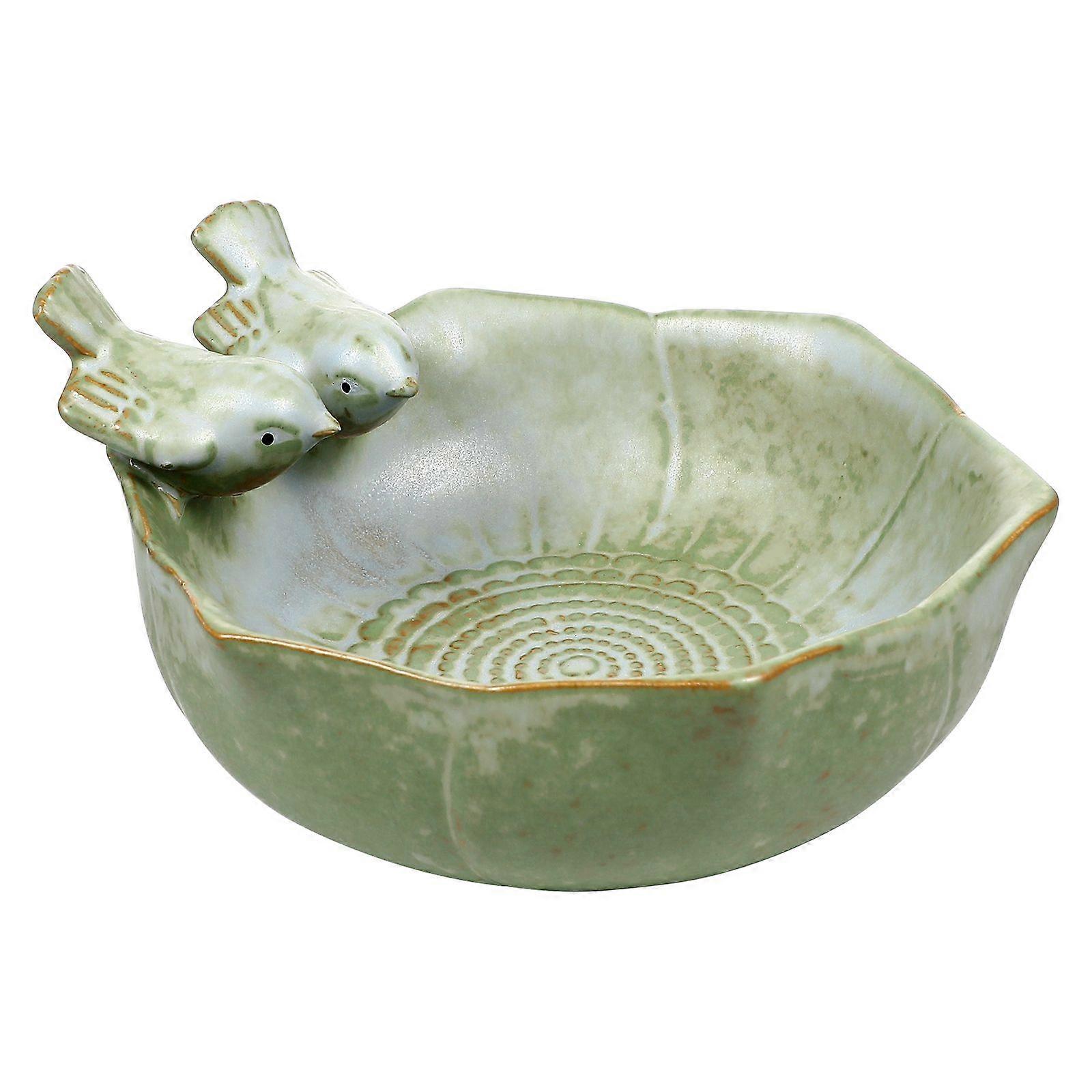 BESTONZON Ceramic Bird Feeder Bird Bath Bowl Bird Food Holder for Garden Outside Decoration
