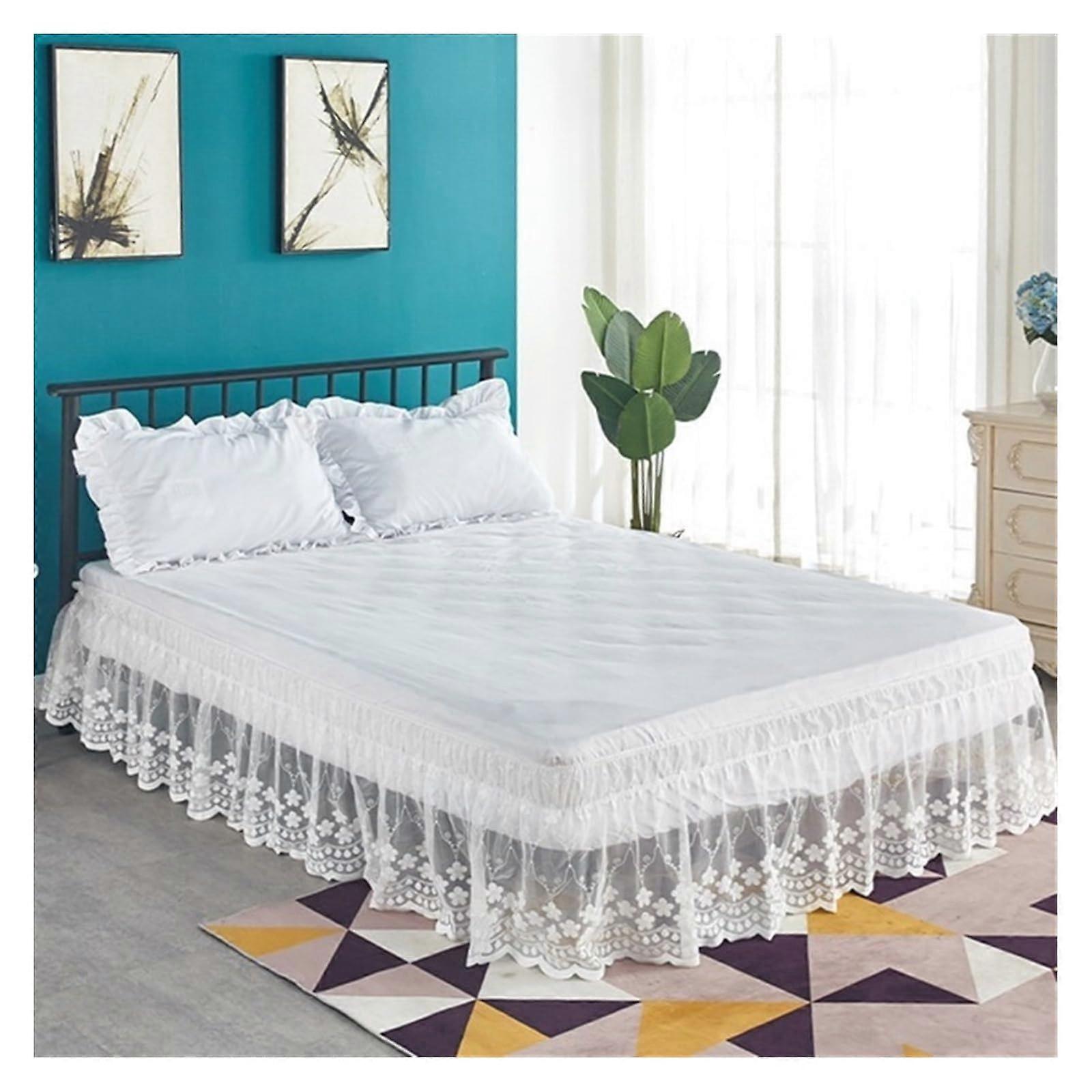 Bettrock, Bed Skirt Lace Elastic Bedspread Day Cover Hotel Home Bedding (White)
