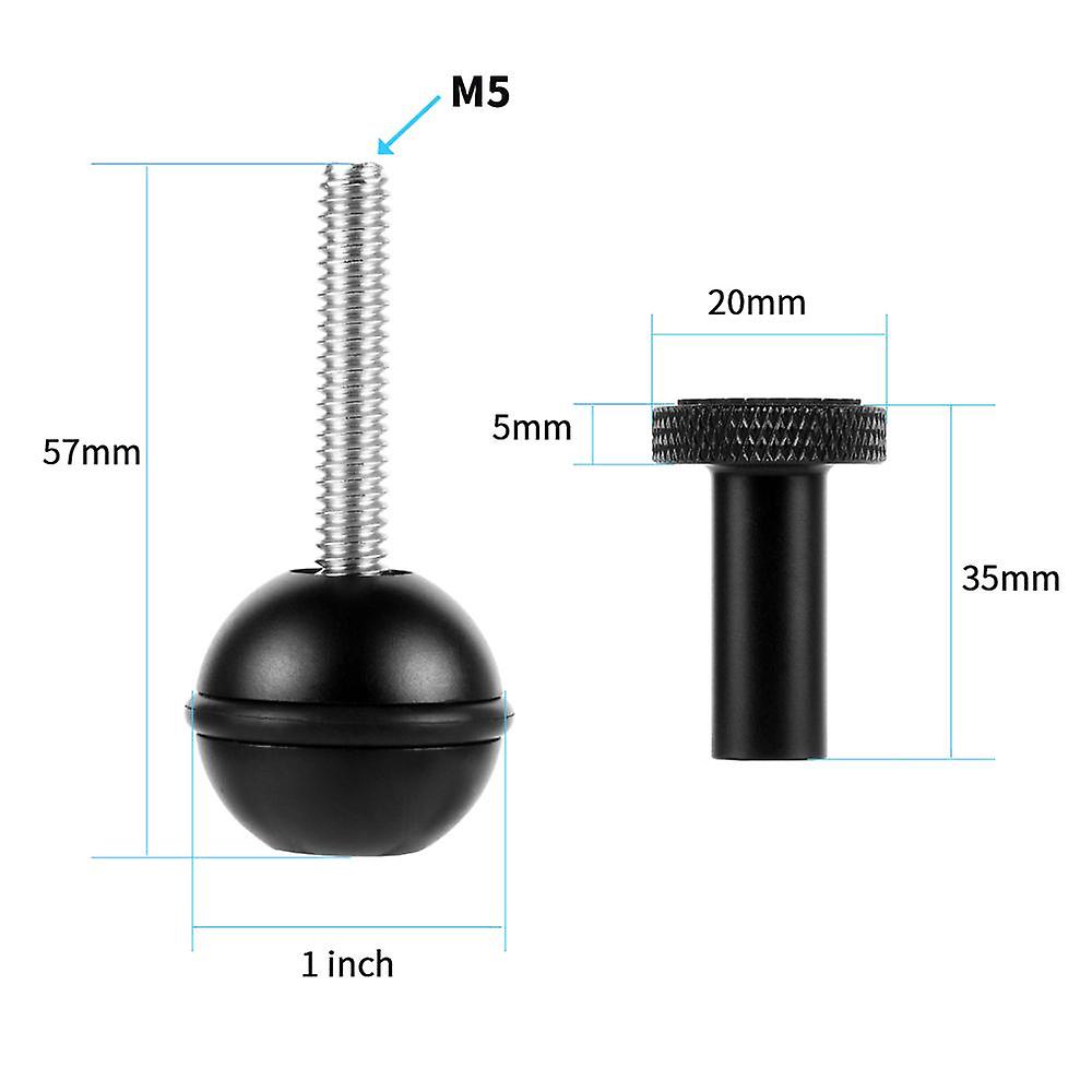 Bgning 1inch Ball Head Adapter 1/4 M5 Adjustable Screw Fixed Mount Anti-loose Camera Underwater Diving Photography Bracket Parts