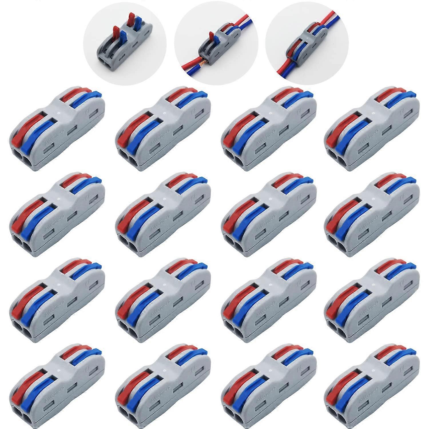 Product Description: Quantity: 16 pieces Stripping length: approx. 9-10 mm Product number: SPL-2C Rated current: 32 A Rated voltage: 400V Conductor material: copper conduction Wiring range: Can be connected: solid/stranded hard wire 0.08-4.0 mm Connectable: 0.08-2.5mm stranded flexible wire Material ---- Electrical connectors made from the best flame retardant insulating material Nylon PA66. Long service life, corrosion resistance, aging resistance, high pressure resistance, insulation and flame retardant Easy to use----These electrical connectors are easy to install, they don't need to be operated by tools. Just plug and play, then it's done. Each junction independent shrapnel, different wires managed separately, different diameters can be safely connected. Wide applications----Wire connectors widely used in decoration wiring, such as ceiling fans , sockets, switches, cars, motorcycles, boats, speakers, lamps, electrical boxes, chandeliers, light switches, fan controls,