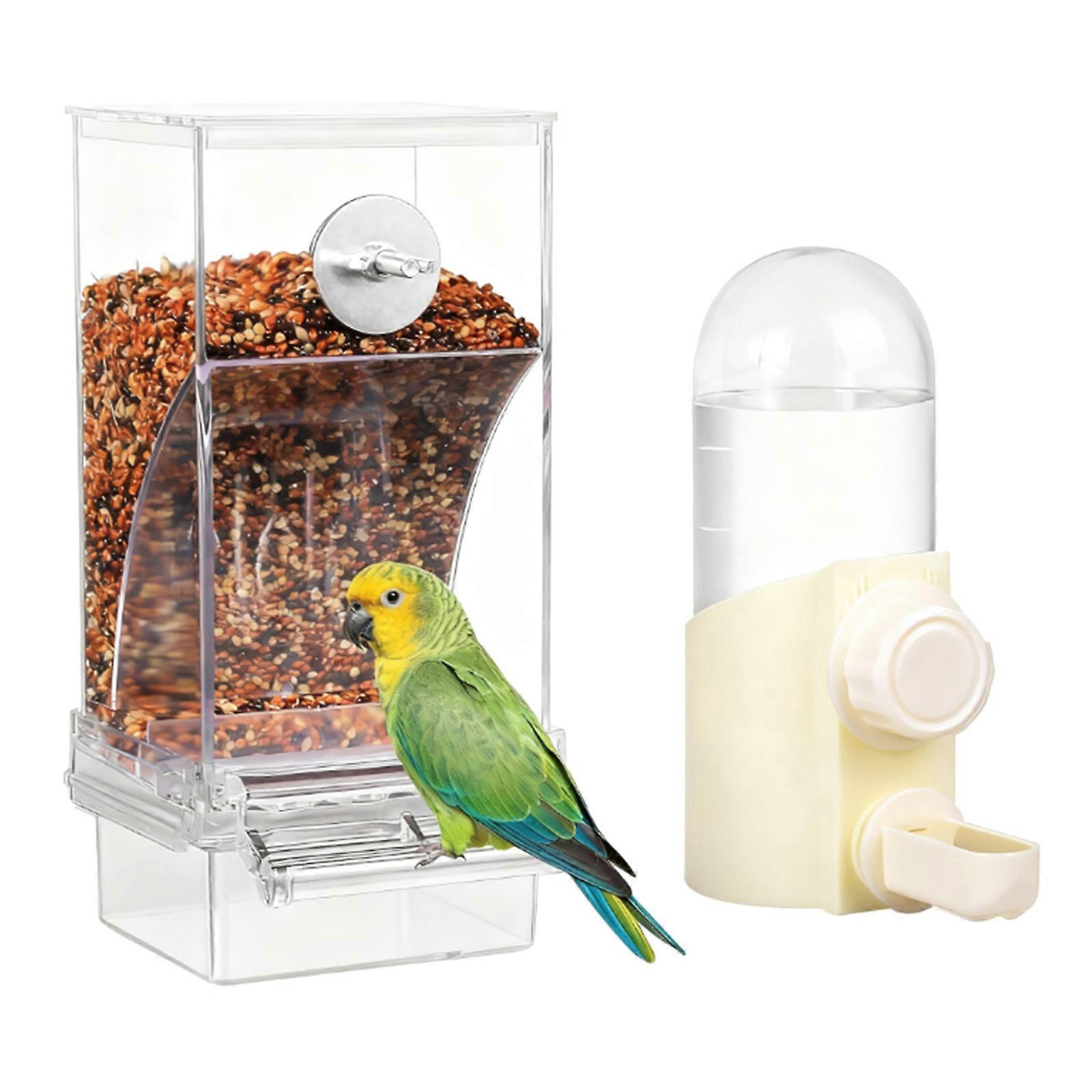 Bird Cage Feeder Waterer Set 2 Pack Visible Food Level Monitor Suitable for Conures Mynahs Small Pet Birds Multicolor