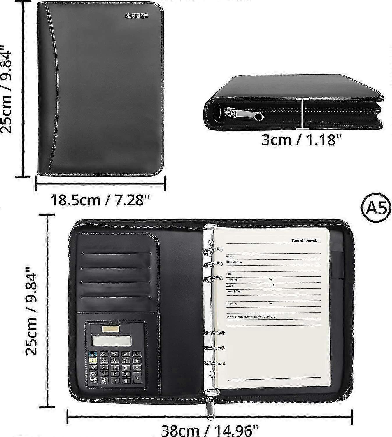 Black Work Portfolio A5 with Ring Binder, Zipper and Refillable Notepad