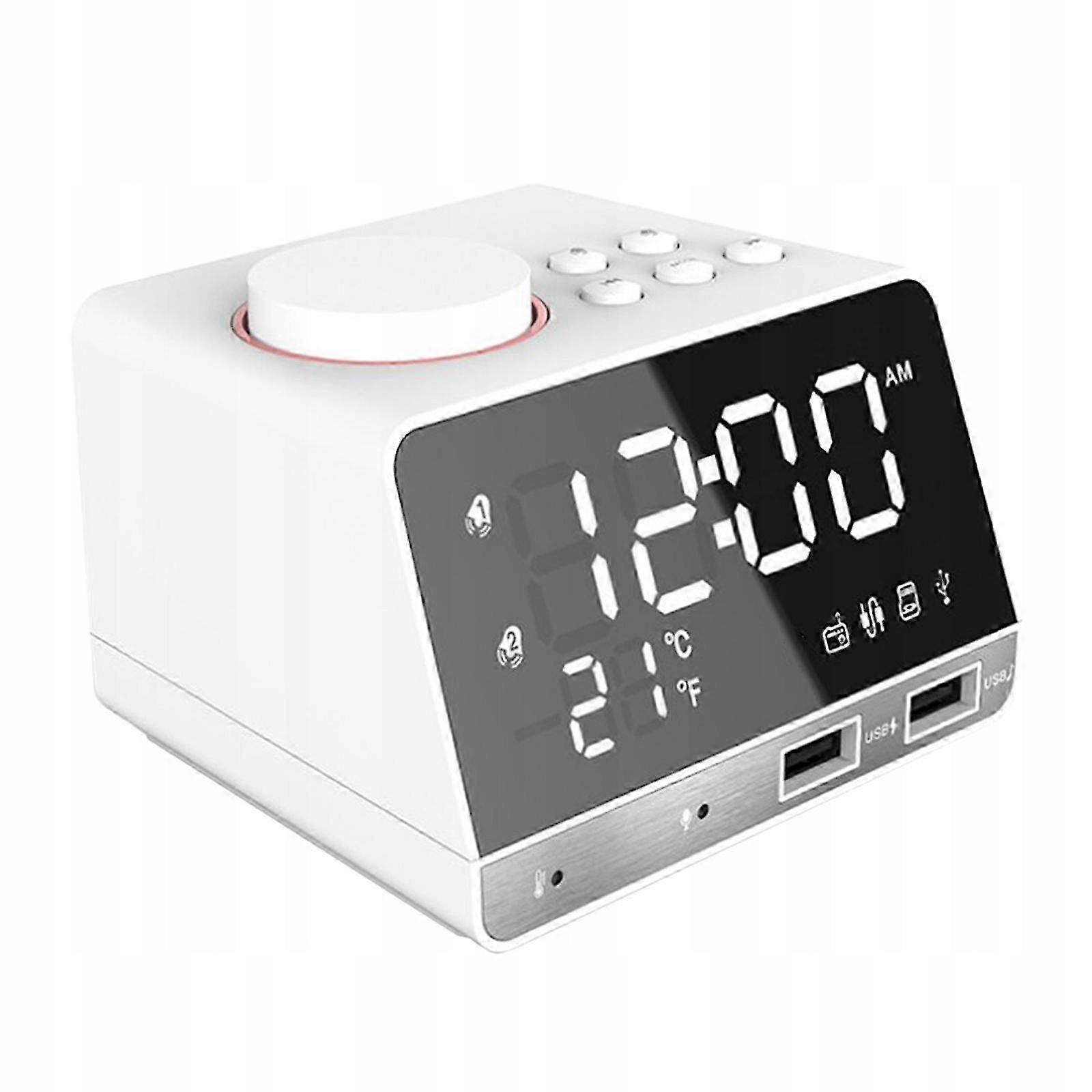 Digital Clock Bluetooth Radio Clock Nap Clock as described Description: Universal design: This mini item mainly has three roles: digital clock, Bluetooth speaker and radio. With its mini and lightweight design, you can take it with you anywhere, anytime without any hassle. Two USB ports: There are 2 USB output interfaces for charging USB powered electronic devices such as mobile phone, tablet and so on. You can also insert into a second USB port to play your favorite songs. Radio Function: This radio with digital tuning allows you to wake up from the broadcast radio and fall asleep from your favorite radio station, an amazing experience. Great sound quality: Powered by the latest Bluetooth 4.2 technology, our radio alarm clock speaker delivers Fi sound even in noisy environments. Plug and play: Plug and play, no need any driver, convenient to use. Besides, there is a place to mount the battery for the button battery (included), which helps to keep time and settings in case of power outage. Backlit LCD Screen: With a 4-inch, easy-to-read LCD screen, you can read clearly and easily. In addition, there is a brightness that you can adjust to meet different needs. Specification: Material: Size: (L. x W x H ) ok . 98x84x67mm/3.86x3.30x2.63 inch Bluetooth version: 4.2 Input: 100 - 240 V, 50/60 Hz Output: 5V 2A DC The package includes: 1 piece LED digital clock 1 piece audio cable 1 piece EU plug adapter 1 piece instruction manual