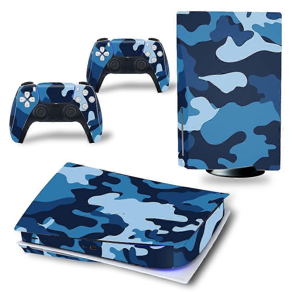 Camouflage Blue Skin Decal for PS5 Disk Edition Console and Controllers, Dust and Scratch Protection