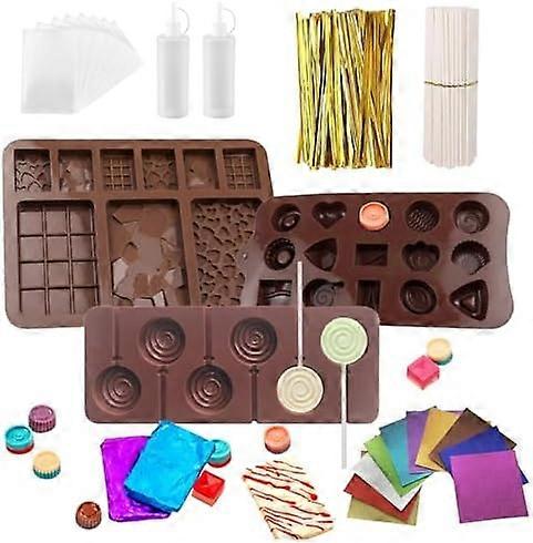 Chocolate Maker Kit, Chocolate Lollipop Making Kit with Chocolate Moulds Silicone Pop Sticks and Wrappers, Cake Pop Maker Kit to Make Yummy Choco Bars