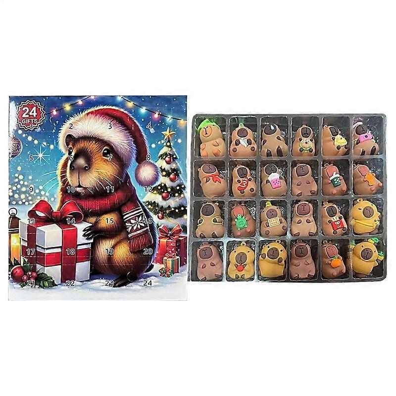 Christmas Capybara Countdown Calendar Capybara Christmas Miniature Doll Advent 24pcs 3D Cute Capybara Christmas Tree Pendant-A